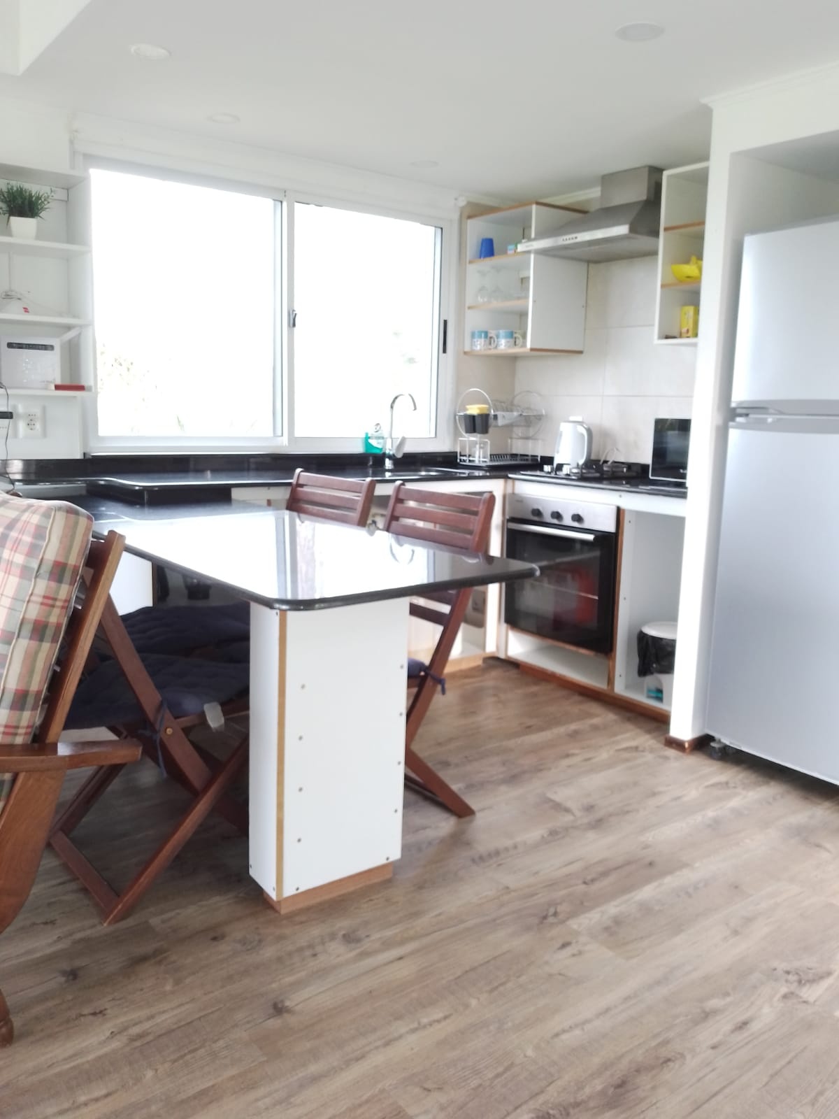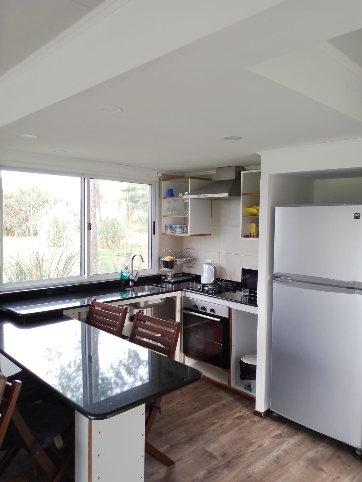 Cuenta con cocina integrada con barra, baño moderno, dormitorio y un entorno donde el verde y el canto de los pájaros son parte del día a día 🌿☀️